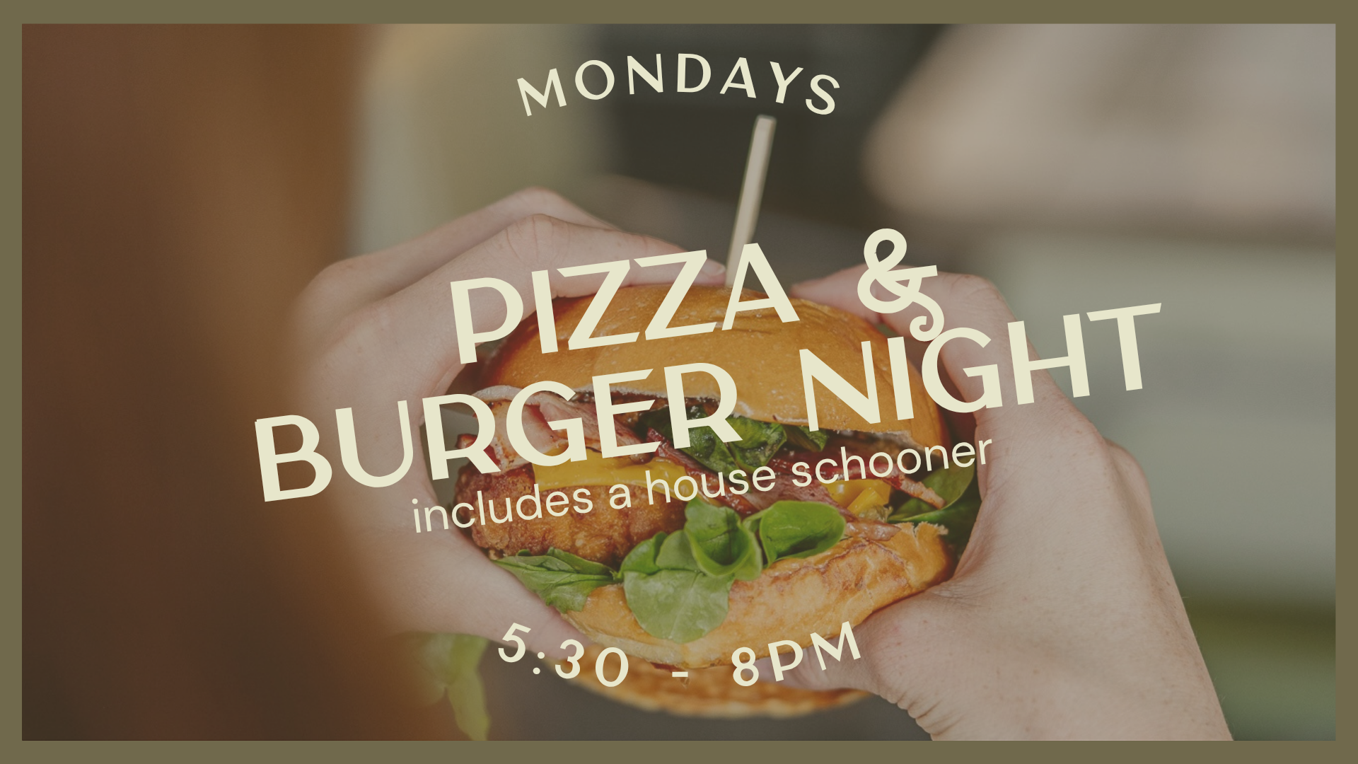Any burger or any pizza + a house schooner for $25. Easy, tasty, done.